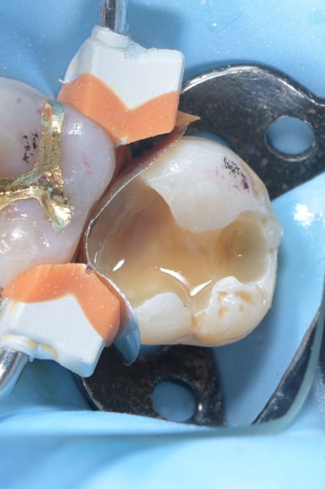 ๊ธ(๊ณจ๋) ์ธ๋ ์ด๋ ์ค๋ ์ธ ์ ์๋ ์ข์ ์ฌ๋ฃ์ธ ๊ฑด ๋ง์์. ํ์ง๋ง ์์ํ ์๋ณต๋ฌผ์ ์์ต๋๋ค. ์๊ฐ์ด ์ง๋๋ฉด์ ๊ธ๊ณผ ์น์ ์ฌ์ด์ ๊ฒฝ๊ณ(๋ง์ง)์ ๋ฏธ์ธํ ํ์ด ์๊ธธ ์ ์๊ณ , ์ด ํ์ผ๋ก ์ธ๊ท ๊ณผ ์์๋ฌผ์ด ์นจํฌํ๋ฉด ๊ธ ์๋์์ ์กฐ์ฉํ ์ถฉ์น๊ฐ ์งํ๋ผ์. ์ด๊ฑธ 2์ฐจ ์ถฉ์น(์ด์ฐจ ์ถฉ์น, Secondary Caries)๋ผ๊ณ ํฉ๋๋ค.